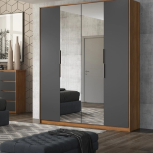 Ropero Movelmax Attore 4 Puertas con 2 Espejos – Moderno Almendra/Grafito